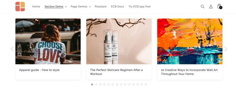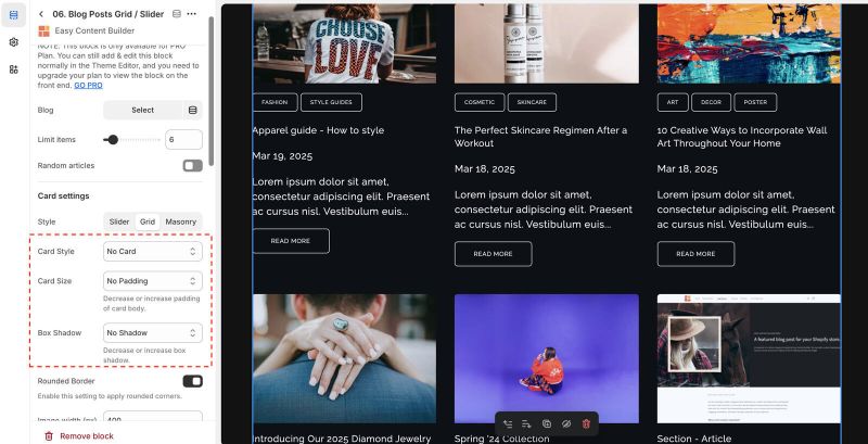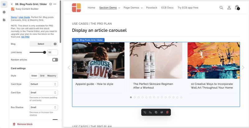 Step 2: Create a Blog Post Grid/Slider section with these settings: