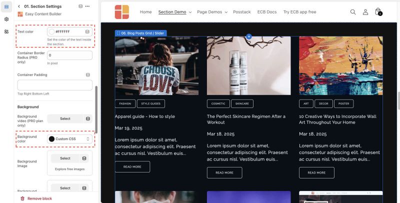 - Step 2: Add an Blog Post Grid/Slider section and customize the settings according to your preferences.