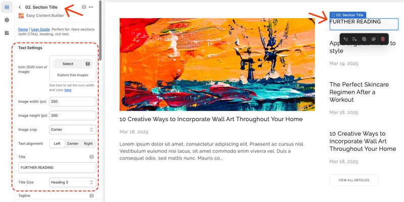 | Title Size | Change the heading to H1, H2, H3, H4, H5, or H6. |