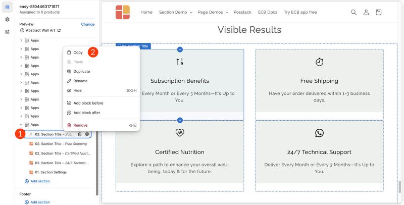 This guide uses the Shopify product page as an example. You’ll learn how to copy blocks from a section and paste them into the Product Information section.